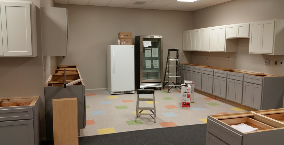 So much progress! The flooring is down, and our lighted sign should be going up on the front of the building this week!